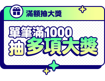 • 抽獎機會依單筆金額累計,滿1000元1次,滿2000元2次,以此類推無上限。